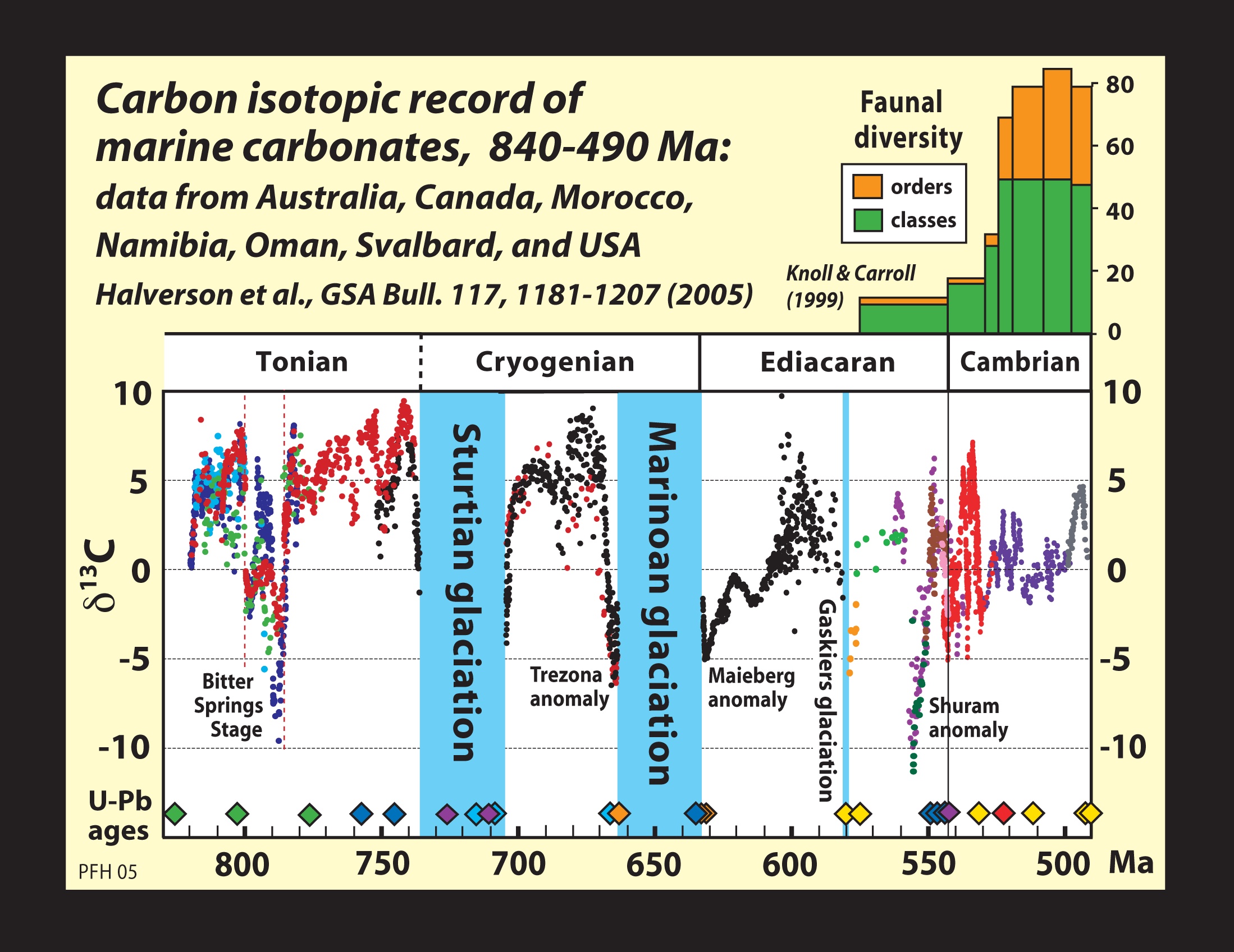 et al., 2005). Also shown is a record of faunal diversity (Knoll & Carroll,